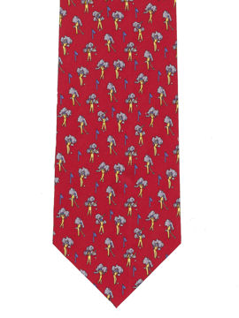 A discrete design showing golfers playing golf on a red background.