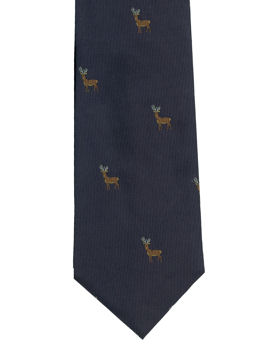 A smart and discrete design showing stags on a navy background. The classic colours on this tie make it possible to wear with a variety of country styles, as well as formal and casual outfits